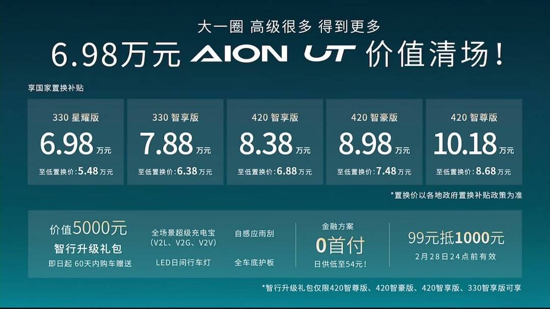 埃安轿车散步正式推出了其第三款全球战略车型——埃安UT,这款A级智能掀背轿车共设有5款车型,价格的规模定坐落6.98万元至10.18万元之间。埃安UT在颜值、空间、安全、智能等多个视点完成了同级车型的全面打破,尤其是作为同级仅有搭载倒车AEB体系的车型,更是引起了广泛重视。